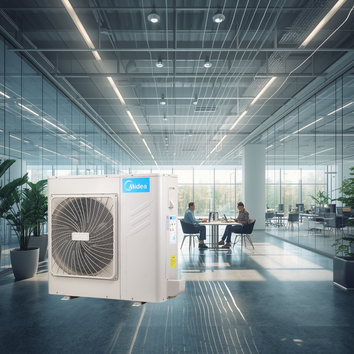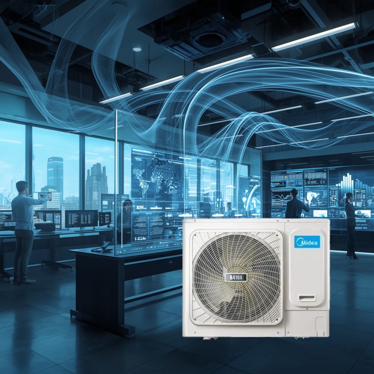 فناوری VRF مخفف Variable Refrigerant Flow است و بر پایه تنظیم هوشمند جریان مبرد متناسب با نیاز هر فضا عمل میکند. این سیستم امکان کنترل دمای مستقل برای بخشهای مختلف ساختمان را فراهم میکند و باعث کاهش مصرف انرژی میشود. برند میدیا با توسعه کمپرسورهای اینورتر پیشرفته و الگوریتمهای کنترلی دقیق، توانسته جایگاه قابل توجهی در بازار جهانی به دست آورد. انعطافپذیری در طراحی، کاهش لولهکشی اضافی و امکان توسعه سیستم از دیگر مزایای آن در پروژههای بزرگ اداری است.